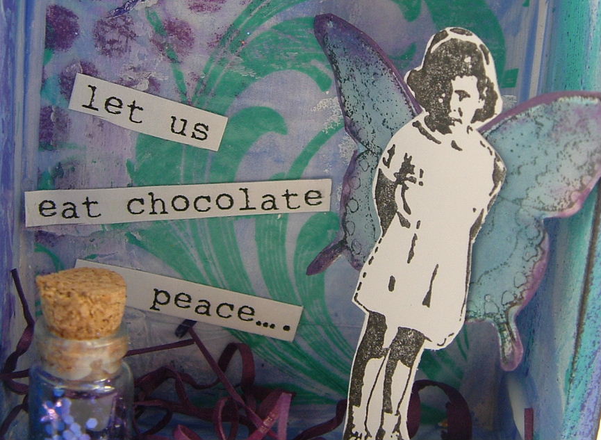 This is the little sister of the fairy who lives in the love potion box.........nope, not lost the plot totally! I enjoyed creating the fairy box that is in this months Craft Stamper magazine so much, I made another one! This one has been created inside a hinged wooden box, and my fairy is the tiny version of the stamp, hence little sister!